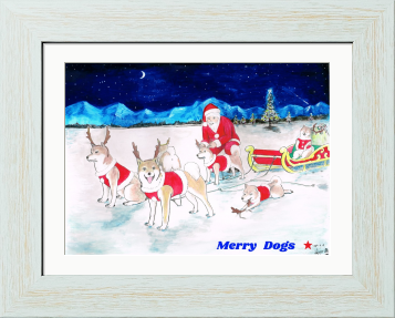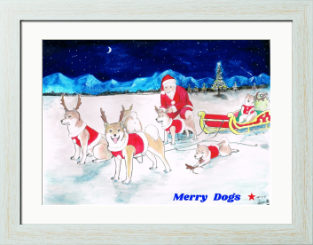 犬ぞりでプレゼント配達へ。 陽気な犬たちの出発準備中。