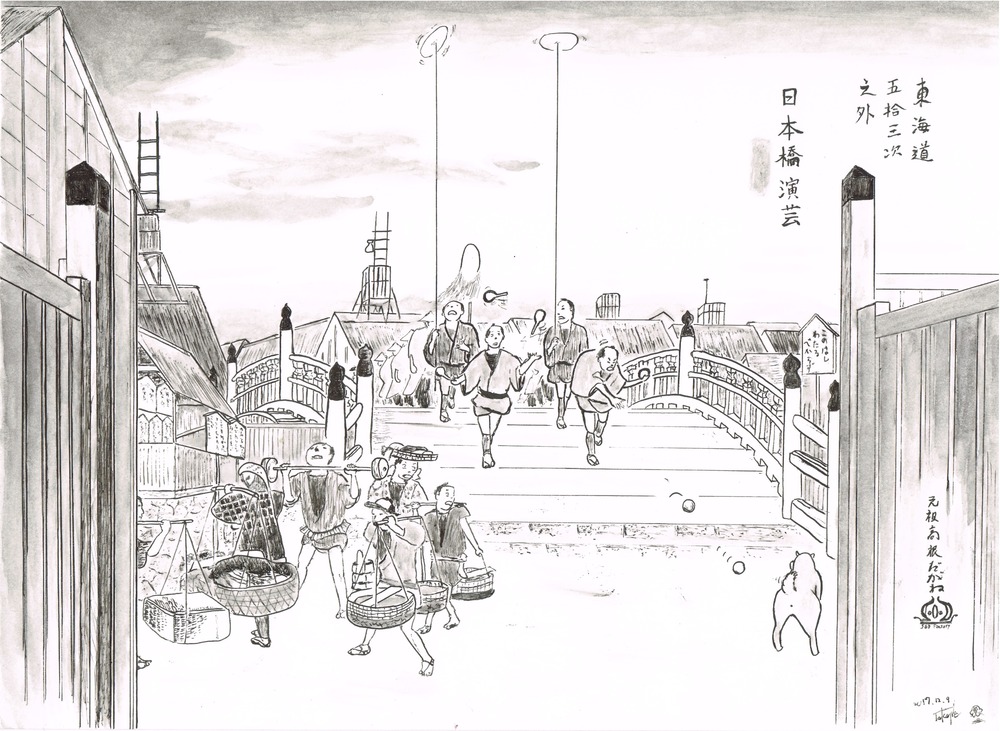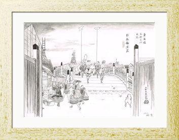 活気ある早朝の日本橋に、参勤交代の大名行列が やってきたと思ったら! 行商に行く中にひとり...? 「このはしわたるべからず」 ★☆★名画の休息 https://www.sodfactory.com/meiQ.html を読む★☆★ .