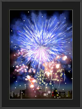 2023年 大胆な色彩で描く、煌めく花火の祭典。子どものようなワクワク感を花火の絵に凝縮。夏の夜空に舞う、花火の幻想的な絵