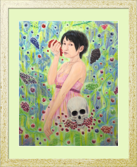 『KyunKyun -elegant juice- (Ver ORG)』 ※正式タイトル。30文字以上の為説明欄にて補足します。 “KyunKyun(きゅんきゅん)”のシリーズの第二作目。 《生と繁栄と衰退(老)と死は巡り続ける。》 この不動のサイクルの輪の中でどれだけ輝けるか☆ 原画は油彩画です。 人物にモデルは無く、創造した架空の人物です。
