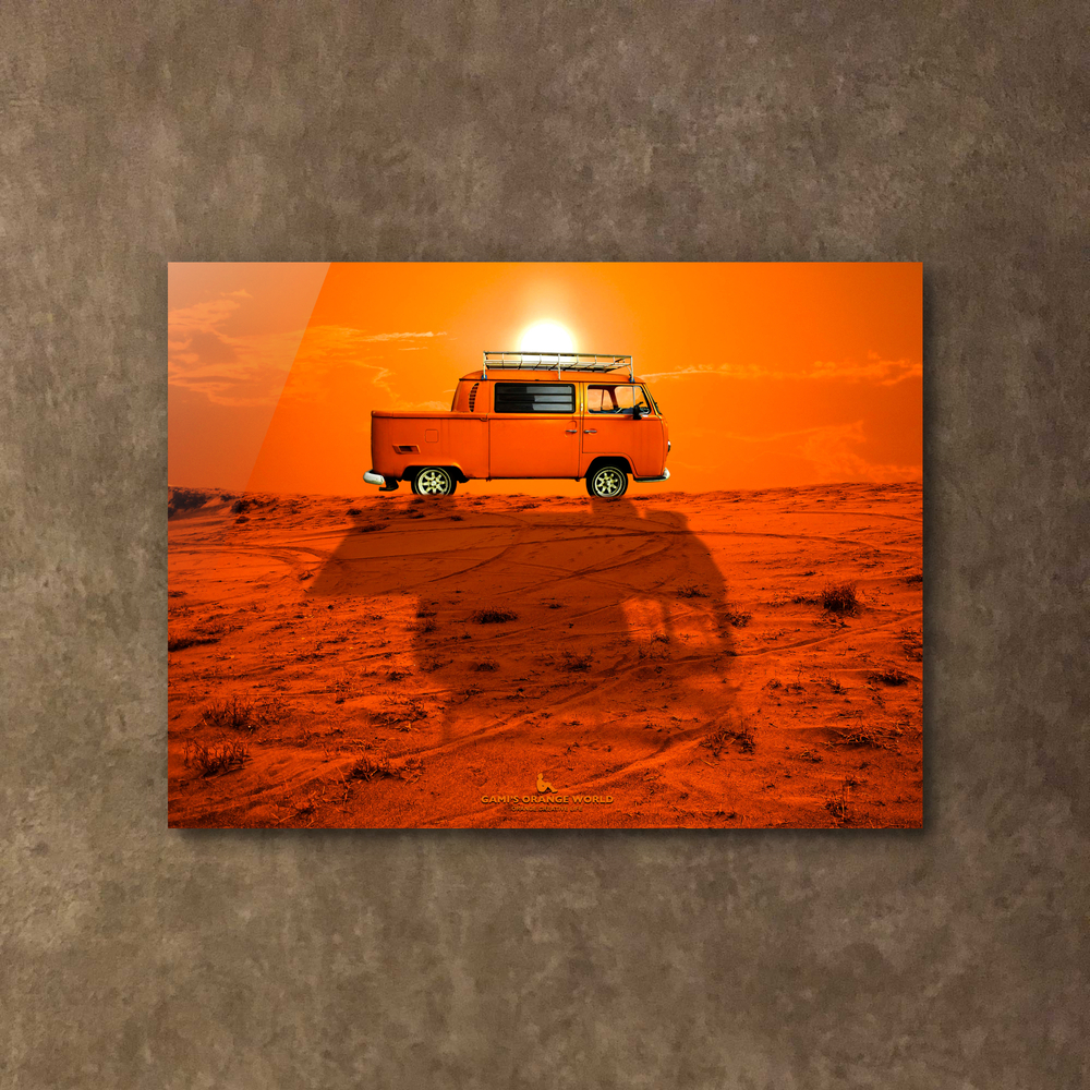 荒野を走るオレンジのトラックに、 夕方になると太陽が毎日ヒッチハイク。 太陽を運ぶオレンジは「真心」の色。 オレンジ色はその人が本来持っている、 明るさと元気を引き出してくれる魔法の色。 また不安や悲しみなど心の痛みを和らげてくれる色でもあります。 ご自宅やオフィス、店舗に飾って頂くことで、 ご購入くださった方が益々豊かになって頂けたら幸いです!