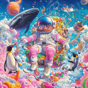 生成AI+デジタルペイント 「生命の記憶を宇宙服という細胞膜の中に閉じ込められた孤独が夢想している」を表現した作品です。