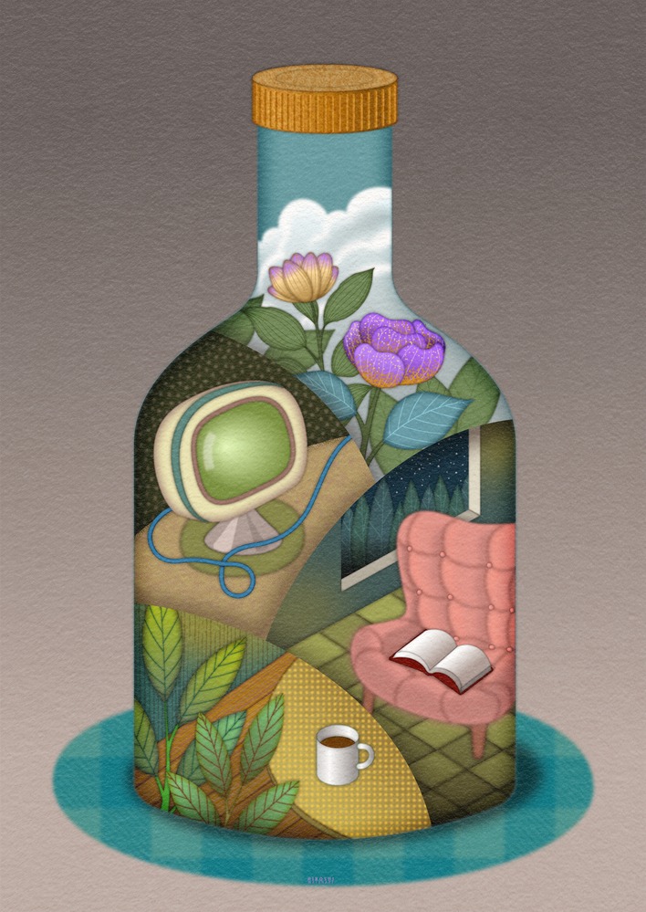ひとつの瓶の中にはさまざまな時間の空間が広がっている。まるで人生の記憶のよう。
