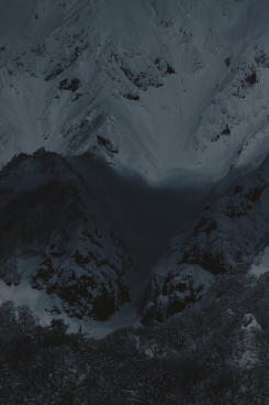 • 「雪のディテールと、谷底に沈む深い影のコントラストは、まるで水墨画のような美しさを放ちます。」