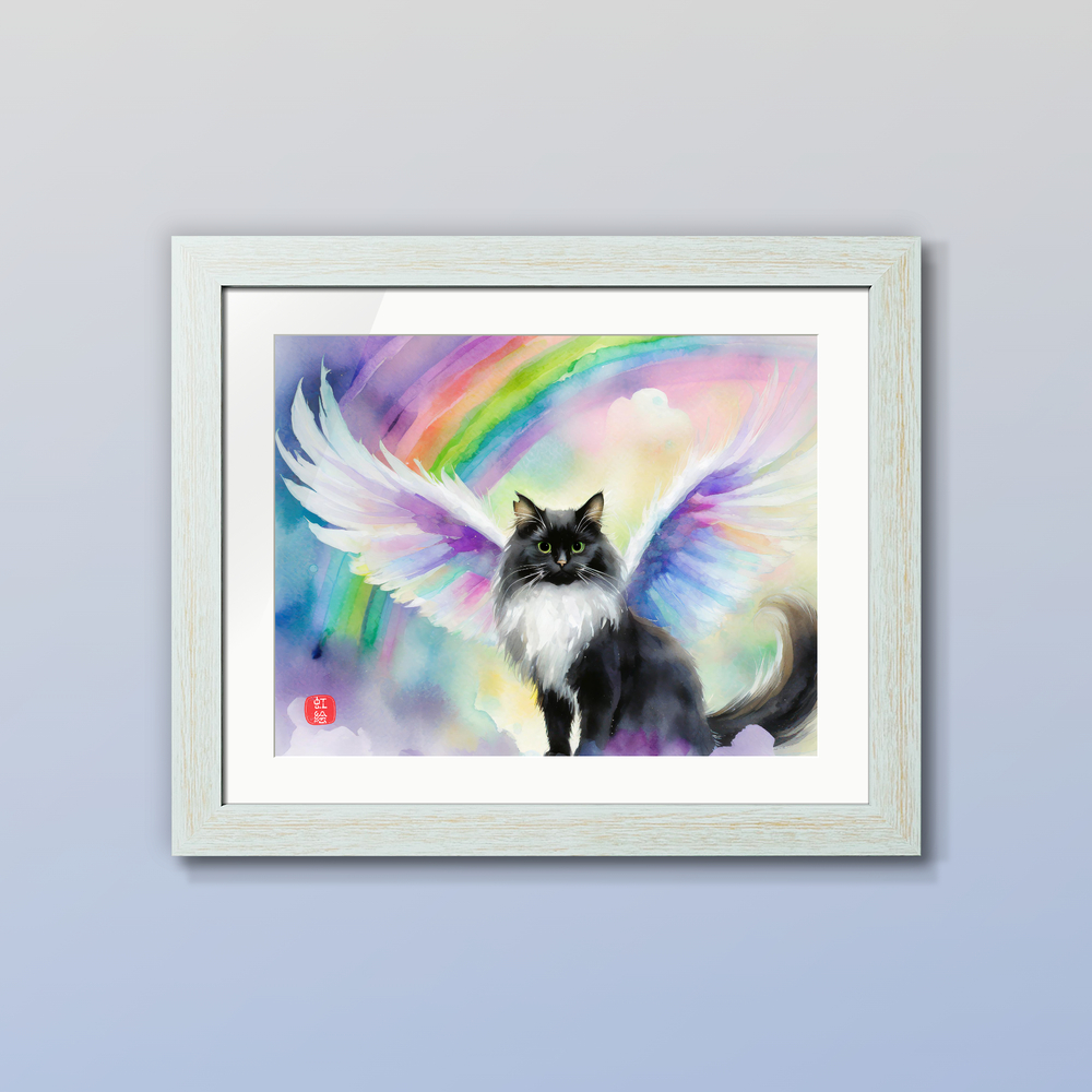 虹の橋を渡って天使になった猫 耳が切れている地域猫(桜猫) 黒猫 デジタルアート