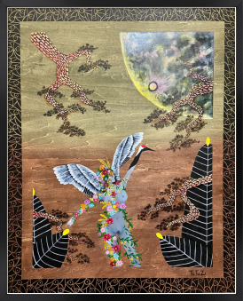 Title:鶴 15号 シナベニヤパネル 油彩