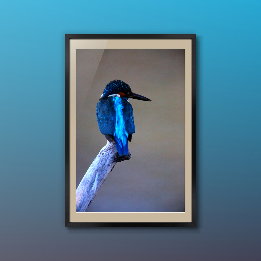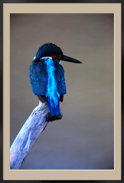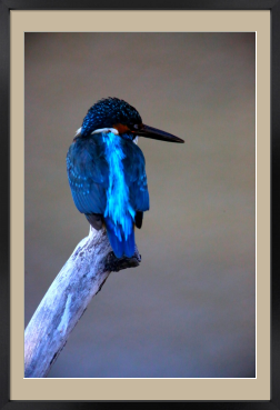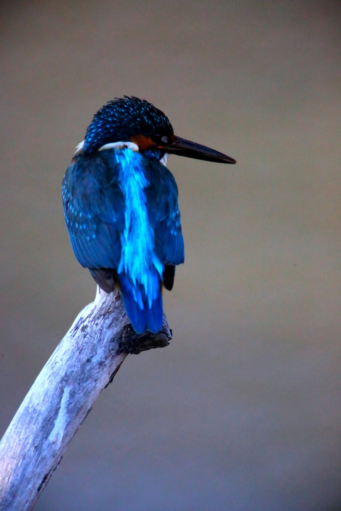 撮影を始めてから約1ヶ月経過し、漸く警戒心が薄れてきたカワセミ。カメラから6-7メートル先の枝でこちら側に背を向けて止まってくれました。
