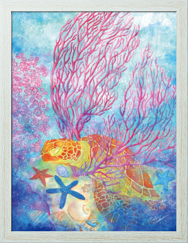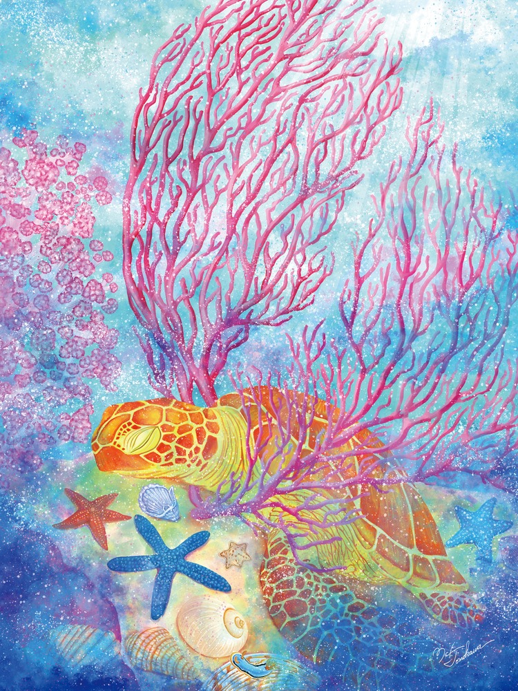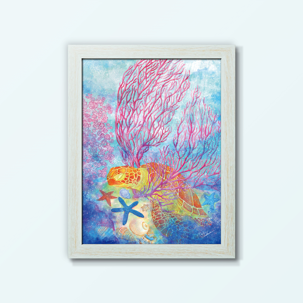 ご覧いただきありがとうございます。 暖かい日差しが差し込む午後の海。 ウミガメさんが気持ちよくうたた寝をしています。 *こちらの作品は《限定30枚》となります*