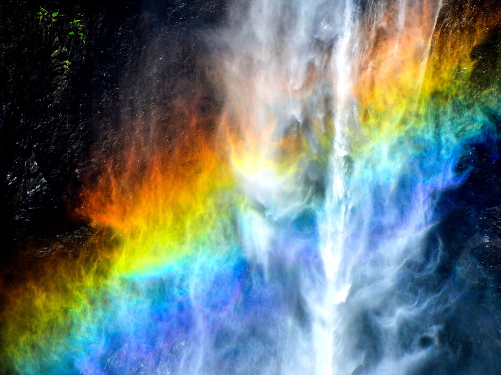 オーストラリアの世界遺産「クイーンズランドの湿潤熱帯地域」にあるワラマン滝にかかる虹