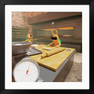 作者がもう10年以上通っているパン屋さんがあります。 その大好きなパン屋さんのことを考えながら作ったのが「パン屋さん」シリーズです。 シリーズの作品は4点ありますが、これはそのうちのひとつ「生地をこねるツム」です。 作品を見ながら、ぜひ香ばしいパンの香りを感じてください。