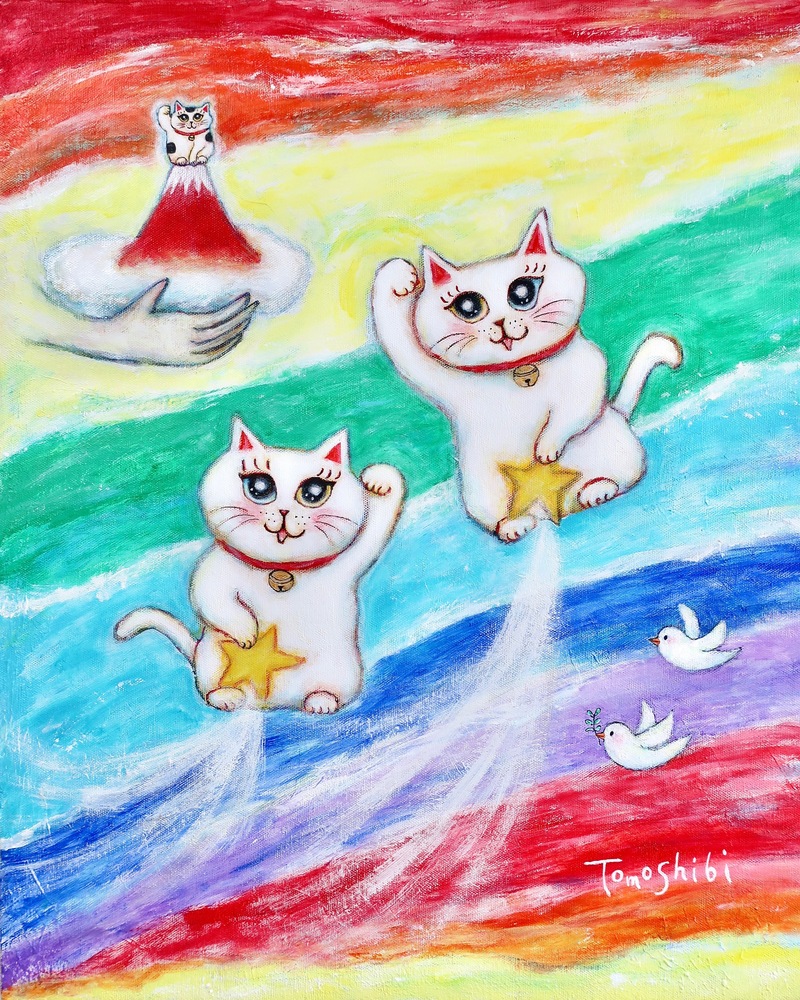 Title:流れ星をつかまえた虹色世界の招き猫たち