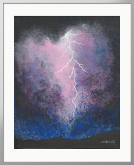 夜空を切り裂く稲妻は、漆黒の夜空を一瞬鮮やかなピンクに染めたのです。 光と闇の競演のようでした。