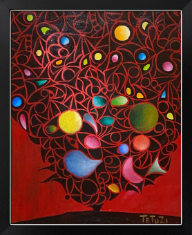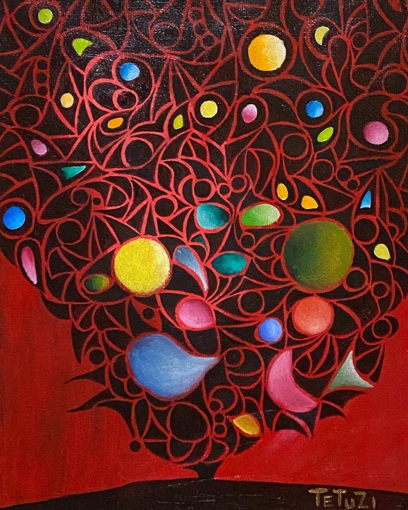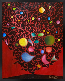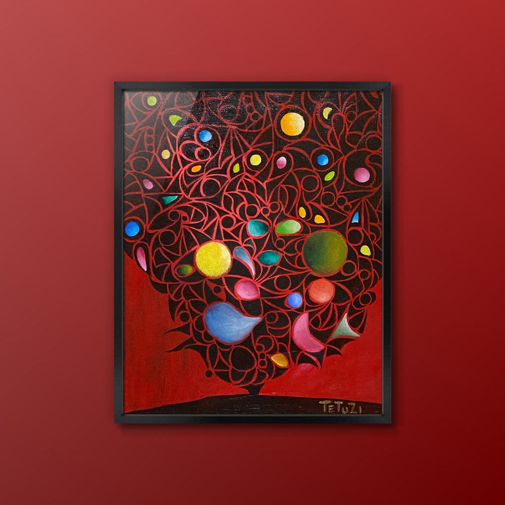 多彩な色彩と形が織りなす美、真作「Mosaic tree」。キャンバスに油彩で描かれたこの作品は、摩訶不思議なモザイクの木々が織り成す風景を見事に表現しており、見る人の心に深い感動をもたらします。独特のタッチと鮮やかな色合いが、自然の美しさを新たな視点から捉えた特別な一枚です。