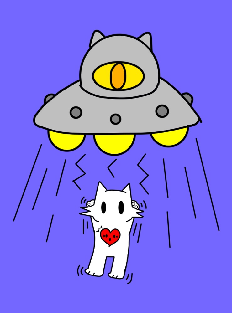 無表情で何を考えているか分からない猫とある野望を達成する為に無表情な猫の「ココロ」として住み込むハートのコンビ。 「ムヒョウジョウなネコとハートの頭上に突如現れた『UFO』。ムヒョウジョウなネコのからだが浮き始めて・・!?」