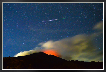 火映の見える桜島上空に流れるペルセウス座流星群