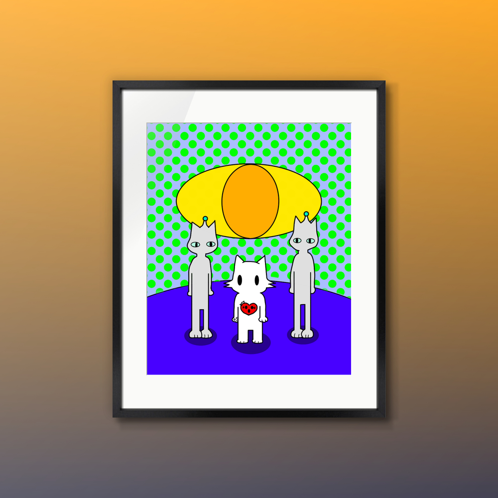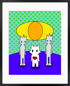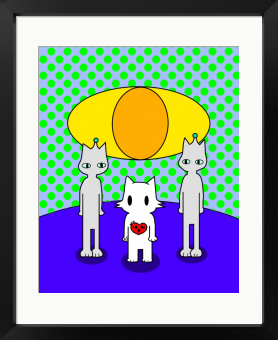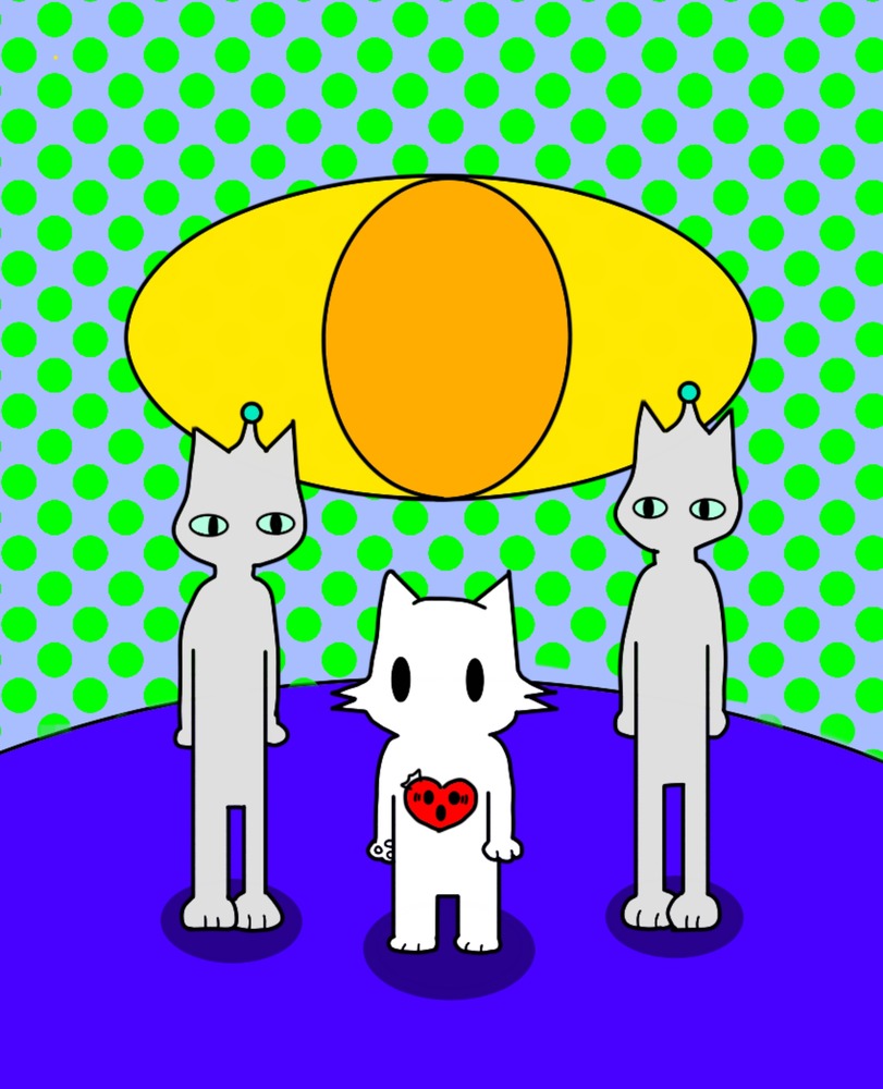 無表情で何を考えているか分からない猫とある野望を達成する為に無表情な猫の「ココロ」として住み込むハートのコンビ。 「『UFO』の中にいるムヒョウジョウなネコとハート。そこで出会ったのは『ウチュウネコ』!ウチュウネコ達はムヒョウジョウなネコに興味津々(?)そうですが、当の本人は冷静(?)」