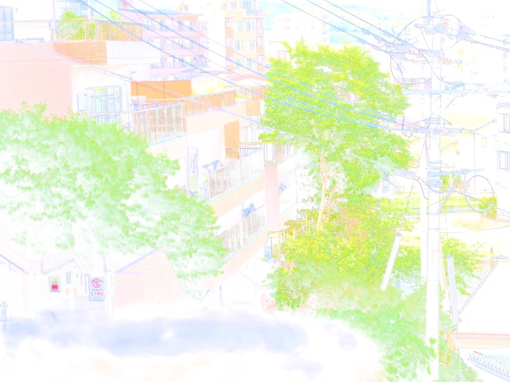住宅街の斜面の坂道からの風景をウォーターカラーのフィルターを通して撮影しました。 水彩画のような柔らかい雰囲気を楽しんでもらえたら嬉しいです。