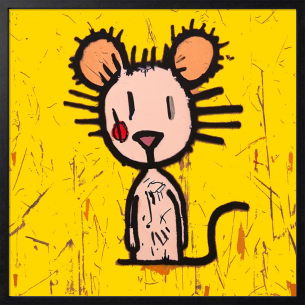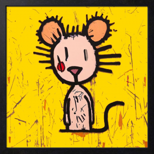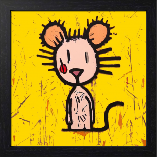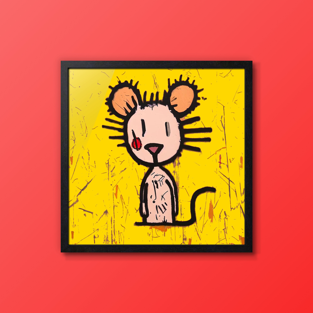 iPadで描いたデジタルイラスト画です。 「 見るネズミ 」と、タイトルを付けました。 こちらの作品は、黄色い背景に浮かぶ、抽象的で無邪気なマウス・・なんだか「 自由さ 」と「 観察される存在 」のようなテーマで、ミニマルな視線が観る者を逆に見つめ返しているような、シンプルながら含みのある印象をイメージした作品です。
