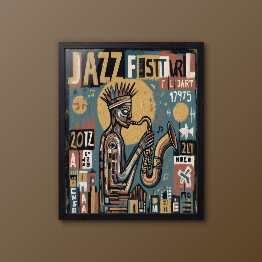 iPadで描いたデジタル画です。 タイトルは「 Unbound JAZZ 17975 」と、付けました。 こちらの作品は、レトロな色彩とともに、好きなジャズをモチーフにして断片的な文字列が共鳴し、まるで音楽そのものが視覚化されたような感覚を呼び起こす・・そんなイメージで描いた作品です。