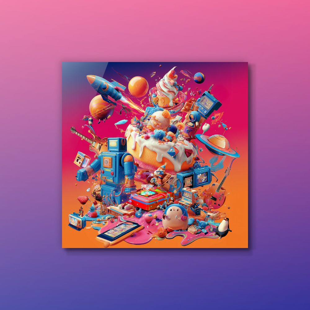 この作品は、そんな無限の「遊びの宇宙」をビジュアル化したファンタジック・カオスアート。童心と未来が入り混じる、混沌(エントロピー)から生まれる“最高の笑顔”を描き出します。