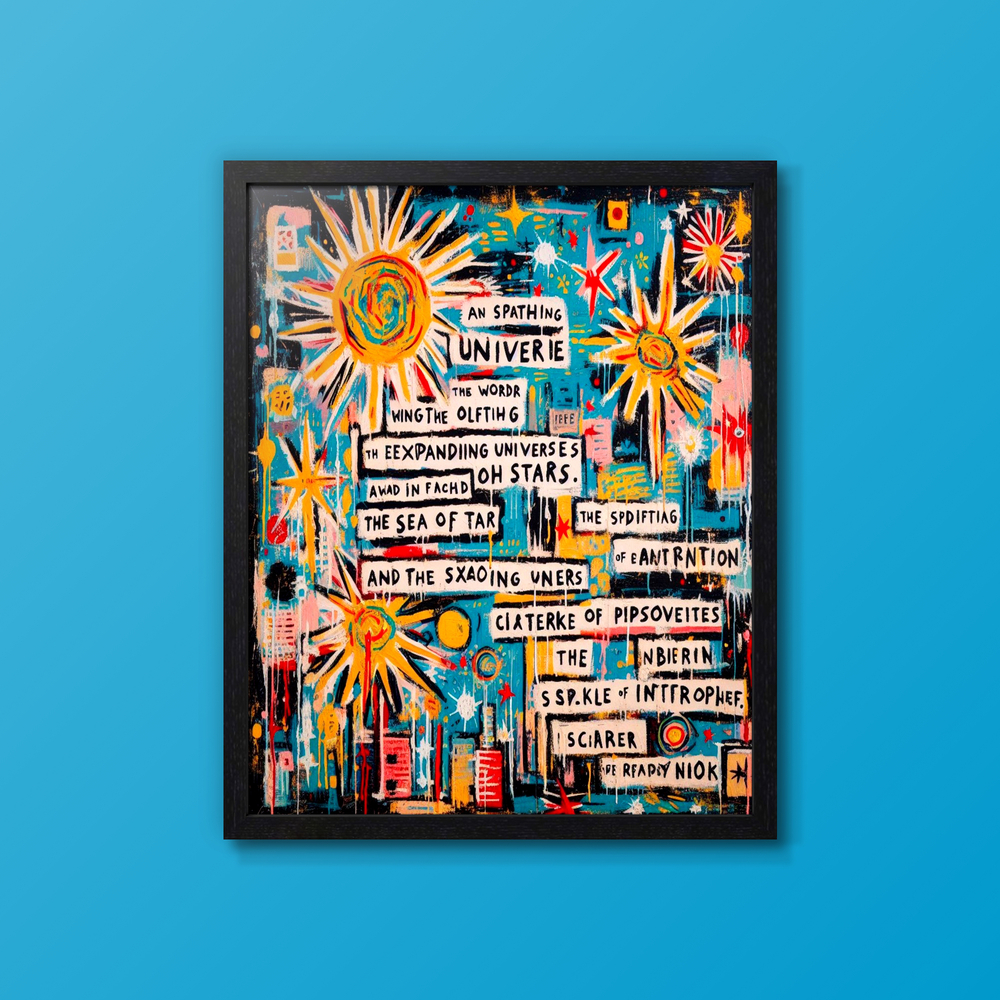 iPadで描いたデジタル画です。 「 fromSTAR 」という、タイトルです。 こちらの作品は、カラフルな色彩と歪んだタイポグラフィが、まるで時空を超えて散らばる言葉の星座のようなイメージで、目まぐるしく展開する意味のない言葉と形を表現してみました。