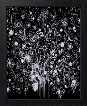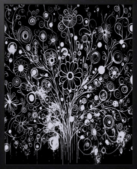 iPadで描いたデジタルイラスト画です。 「 夢見草の輪舞 ( ロンド ) 」と、付けました。 こちらの作品は、白と黒のモノトーンのコントラストを意識して、アールブ・リュット風に花をイメージして描いた作品です。
