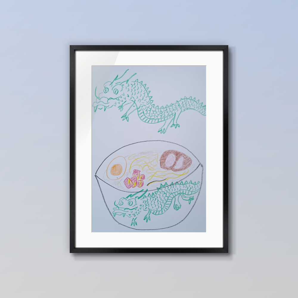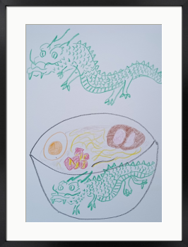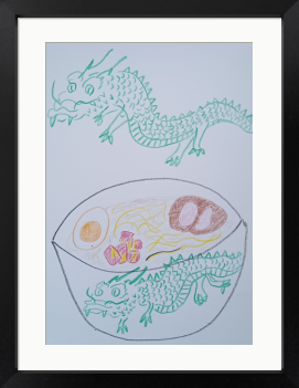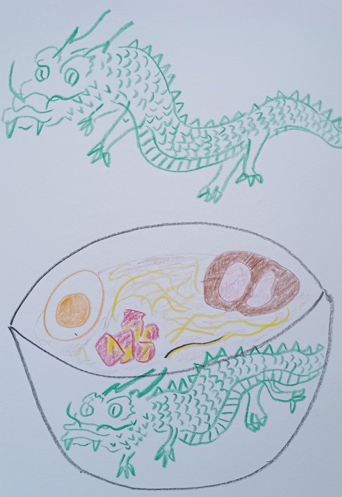 クーピーで描きました。 龍とラーメンのコラボです。 麺が延びないうちに。