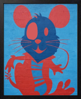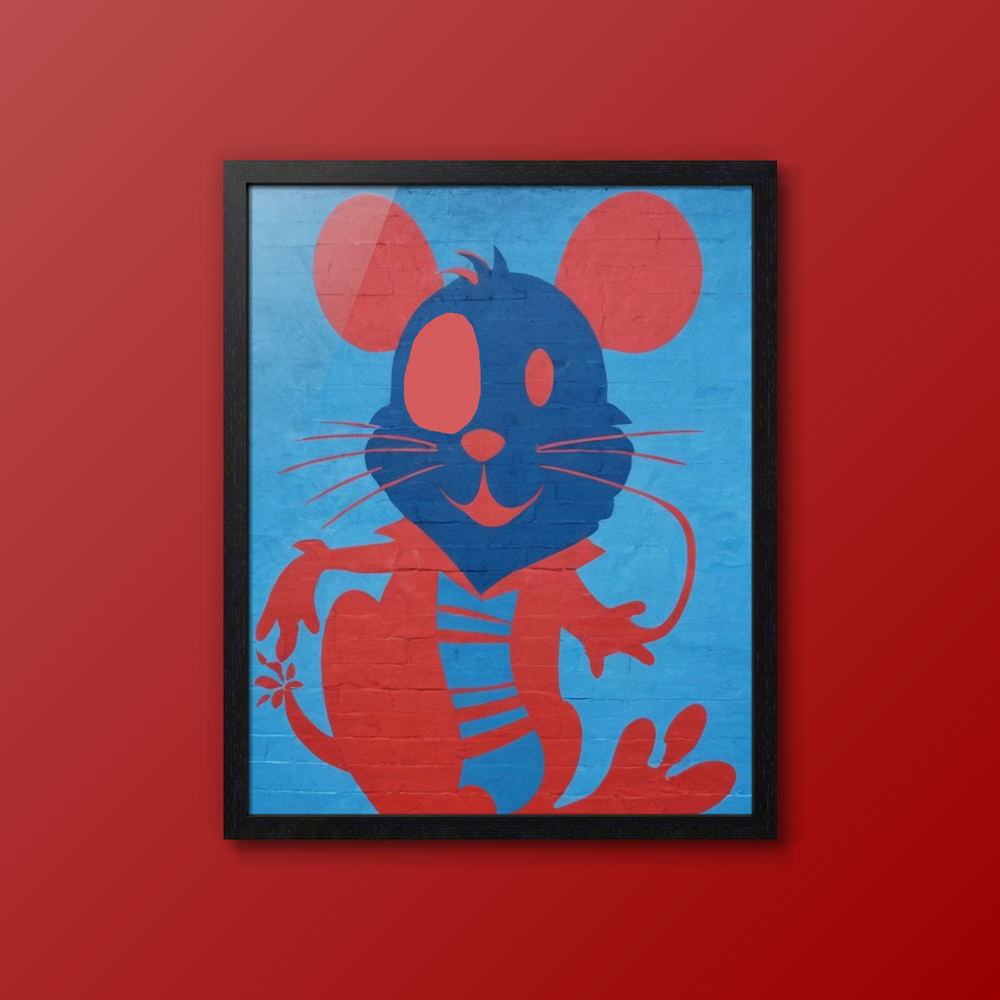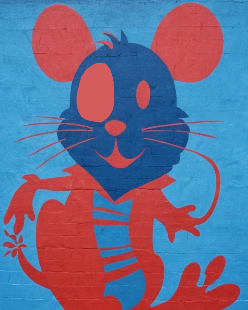 iPadで描いたデジタルイラスト画です。 「 笑うネズミと青い空 」と、タイトルを付けています。 こちらの作品は、ポップなカラーを使って遊び心あふれるイメージで、自分がいつもモチーフにしているネズミのキャラクターを表現してみました。