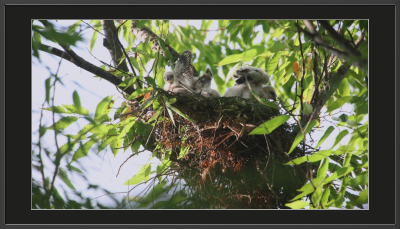 ツミのヒナたちが少し目立つようになった羽軸を自慢するように小さな翼を伸ばしていました。2025