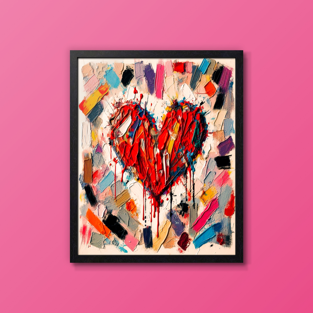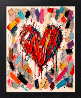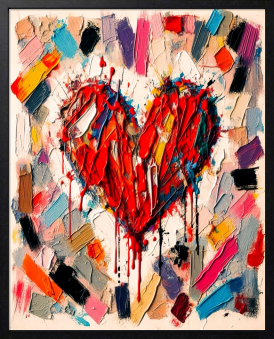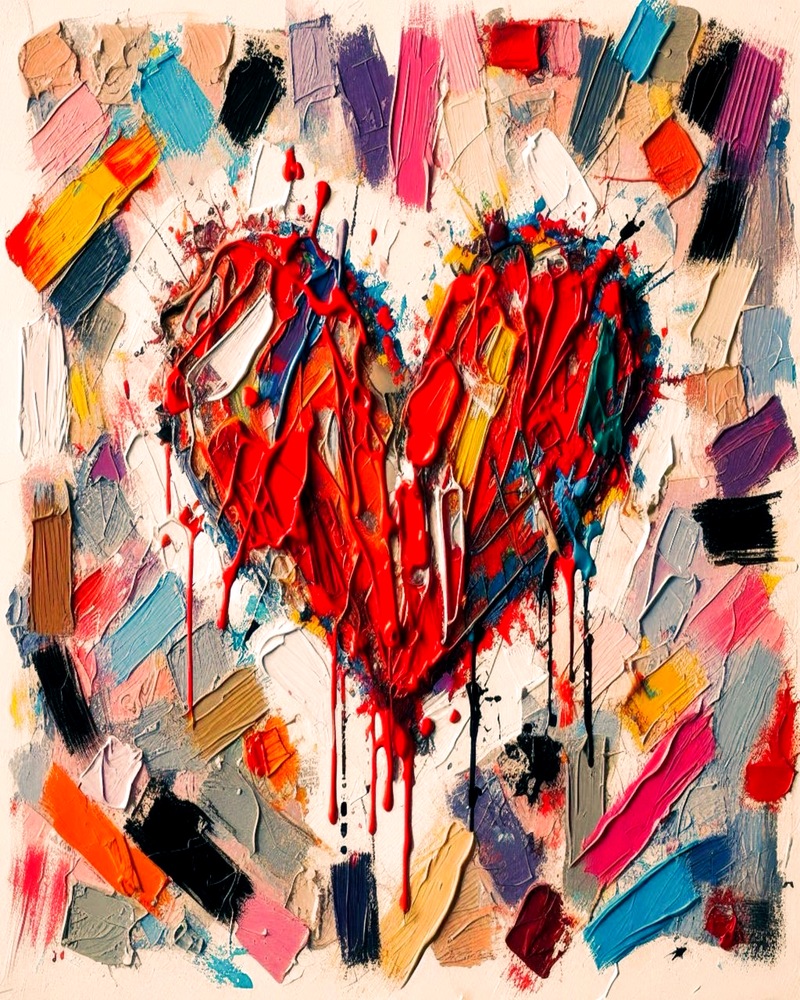 iPadで油絵風に描いたデジタル画です。 タイトルを「 RAW HEART 」と、付けました。 色彩の躍動や感情の流れを力強く表現しています。中央のハートがまるで無数の感情を抱いていて脈打っているよう、生のままの感情をぶつけたような率直さと力強さがある作品になっています。