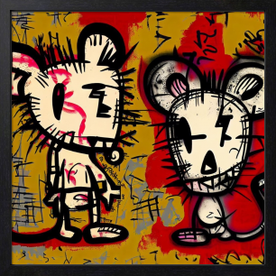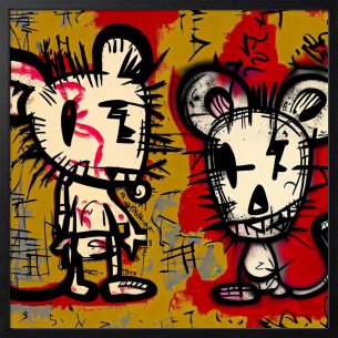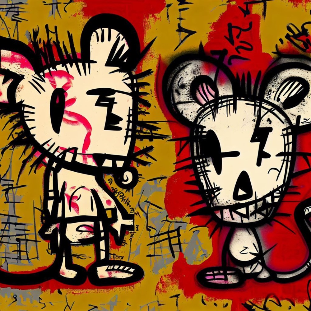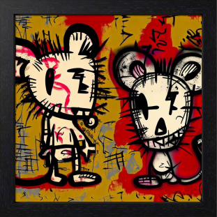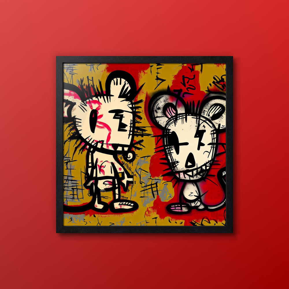 iPadで描いたデジタルイラスト画です。 タイトルを「 都市のネズミと自由のルール 」と、付けました。 こちらの作品は、2匹のマウスをスパイキーでユーモラスに描いてみた作品です。