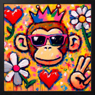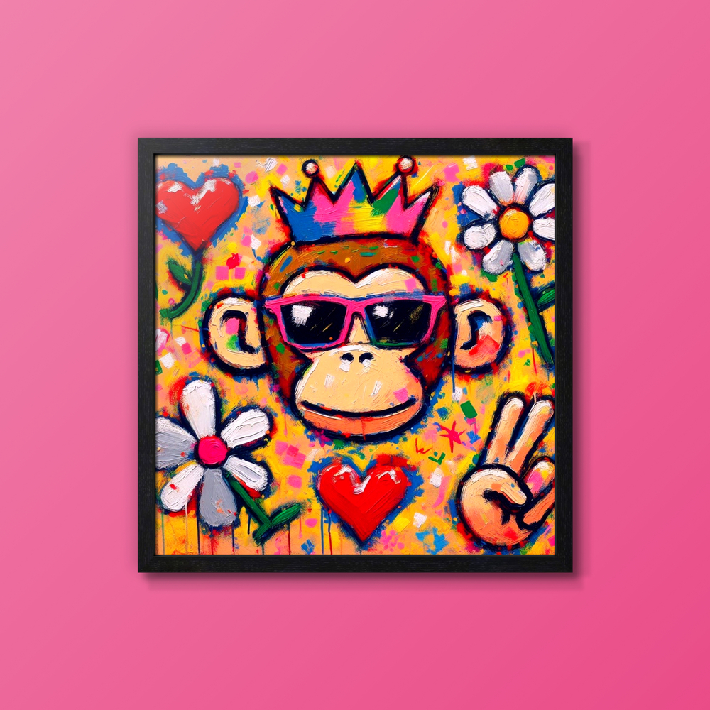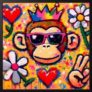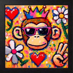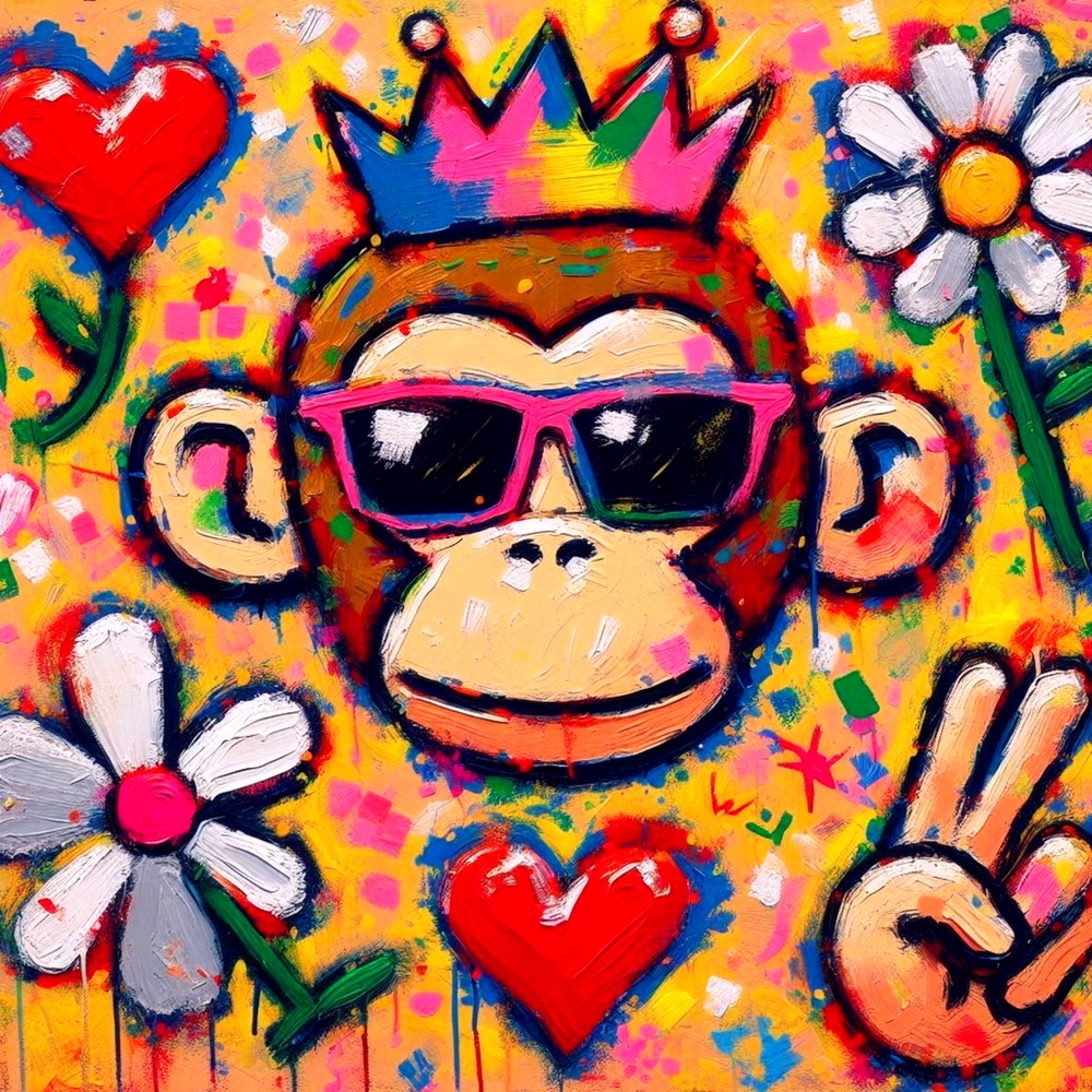 iPadで描いたデジタルイラスト画です。 タイトルを「 祝福の符号 」と、付けました。 こちらの作品は、モンキーをモチーフにして、「 花 」「 ハートマーク 」「 王冠 」「 手のジェスチャー 」など、どれも祝いや愛の象徴をイメージして描いてみました。