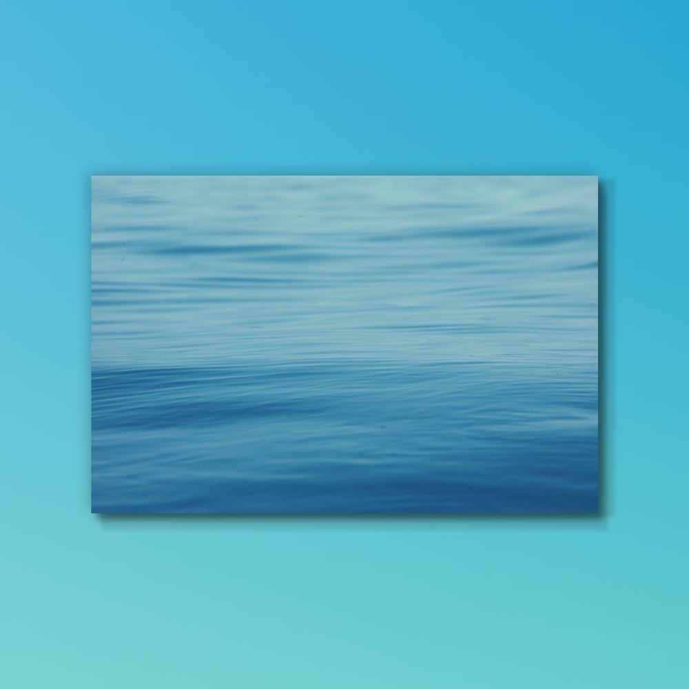 3. ミニマル・抽象的: 水平線や具体的な被写体は存在せず、色と波紋のテクスチャのみで構成されているため、風景写真というよりも抽象画に近い感覚で楽しめます。飾る空間に「青」という色彩のエネルギーと「水」の静けさという要素を純粋に加えます。