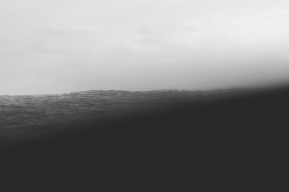 1. ミニマルな構図: 画面は水平の線によって二分され、上部は白く霞む空または光、下部は濃い影とわずかなテクスチャ(波、地面、または山の稜線)で構成されています。この極端なシンプルさが、現代アート的な洗練された印象を与えます。