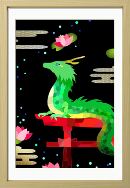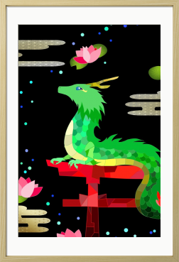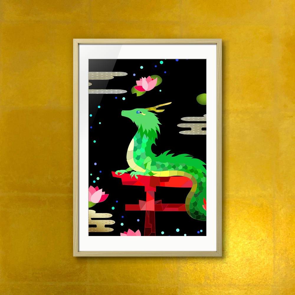 瞳のかわいい龍神さん。 癒しのお守り絵です。 1点限定/額装済み お部屋に癒しと運気を呼び込みたい方へ
