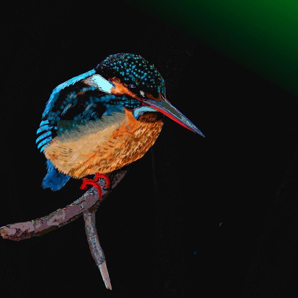 じっとしていると凍えるような寒い日に藪の中でじっと止まっていたカワセミの姿が印象的だったので、Photoshopで描いてみました。 羽を膨らませ体全体が丸みを帯びた感じが雀に似ていたので、かなり太目に描きましたが、ちょっと太すぎたかも知れませんね!