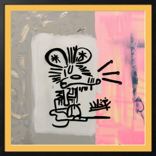 なにか弱りかけているネズミがピンクとグレーの狭間を彷徨う。その線は大胆で不揃い。まるで都市のざわめきや記憶を引っかいているよう・・