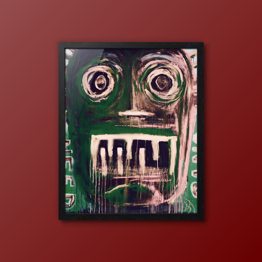 歯が喋り、目が問いかけ、背景がうなずく。抽象化された顔の中央に宿るのは、「 必要 」のエコー・・。 NEEDの文字は画面左端にあえて半端に残し、見る者の想像を挑発します。色彩と形のズレが重なり、偶然のリズムが響き出す。まるで感情がひとりで絵の中に住み着いて、勝手に演説しているような、そんな作品です。ピアノ線のような歯が、言葉未満の音を奏でているとしたら・・それは何を叫んでいるのでしょうか?