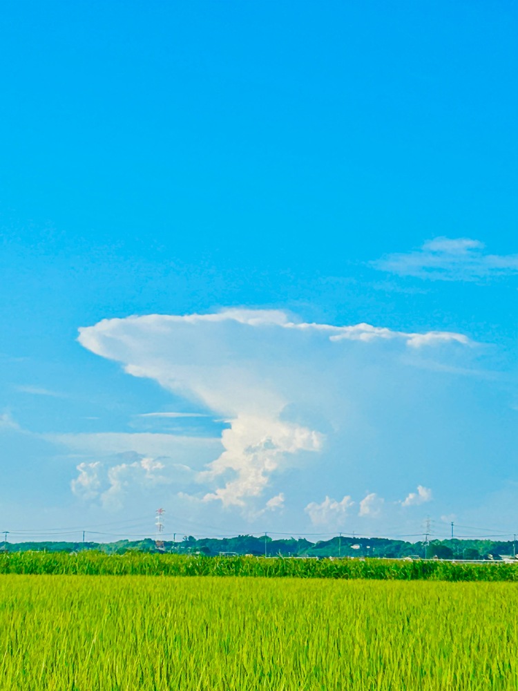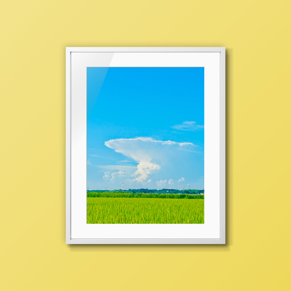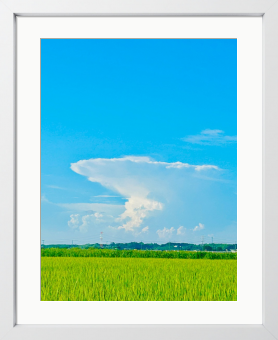 故郷で過ごした幼少期を思い出させる夏空… 日々の忙しさを癒し、空の広さを感じて深呼吸して頂きたいです。