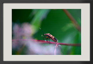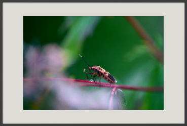 フジバカマの群落で見つけたカメムシの一種、この個体は特に体色が赤味を帯びて綺麗だったので撮影しました。 同じ種類のカメムシは周りに何匹かいて、その色は緑っぽいものから、橙色、ピンクと様々です。皆、止まっている株の色に近い体色を呈しており、これが擬態によるものなのか、或いは吸っている樹液の色に染まったものなのかは分かりません!