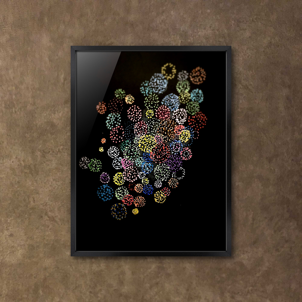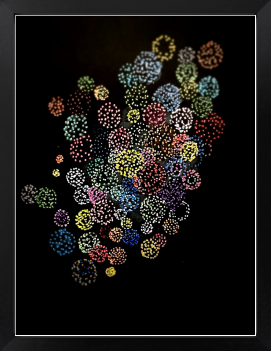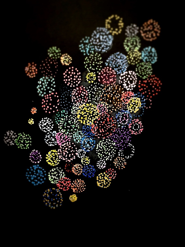 黒い紙にホワイトペンと油性ペンを使って描いてます