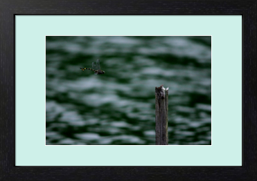 タイワンウチワヤンマという大型のトンボ♂です。自分のテリトリーの見回りを終えて、物見用の杭に止まるところです。侵入者を発見するとスクランブル発射して、テリトリーから追い出しにかかります。