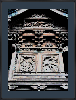 この神社本殿は木製部分(柱、梁、七面に及ぶ胴羽目彫刻、蹴込み彫刻、他)はすべて一本のケヤキから削り出されています。樹齢数百年という一本の欅材(丸太)を見つめ、図面を引いた棟梁の頭の中は一体どうなっていたのでしょうか!それはもう職人の域を超えた特殊な能力であったろうと想像します。