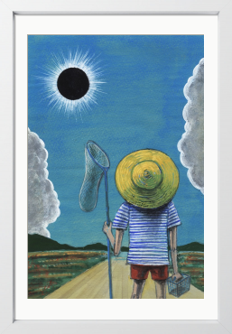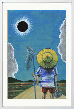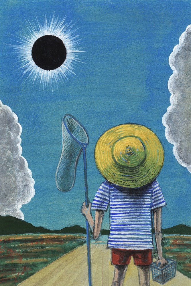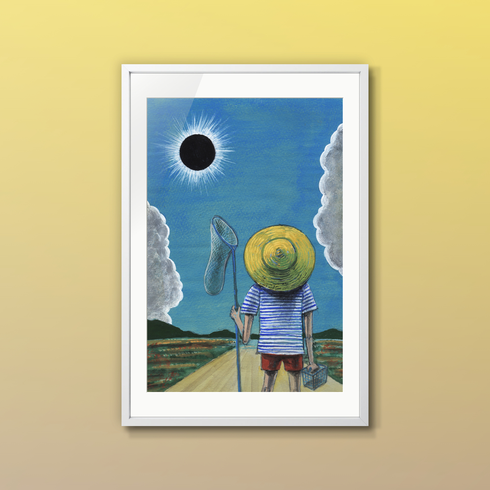 原画は水彩紙にアクリルガッシュ。Boy of Summer 「夏の少年」。遠く過ぎ去りし夏の日、皆既日食を見た記憶は幻?