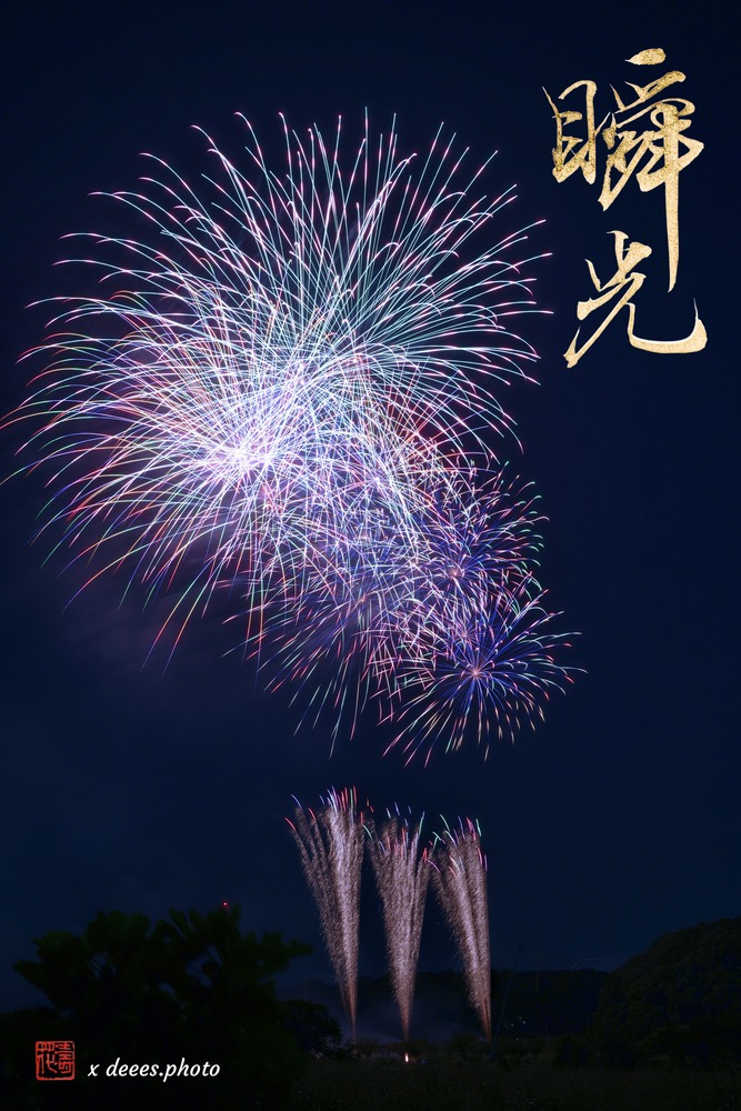 一濤書法 主宰 濤花(なみはな)先生と初のコラボ‼️deees.photo渾身のデビュー作! オーラを纏った力強い書に華やかな花火を表現致しました。 昔、訪れた地の夏の思い出が蘇ります。