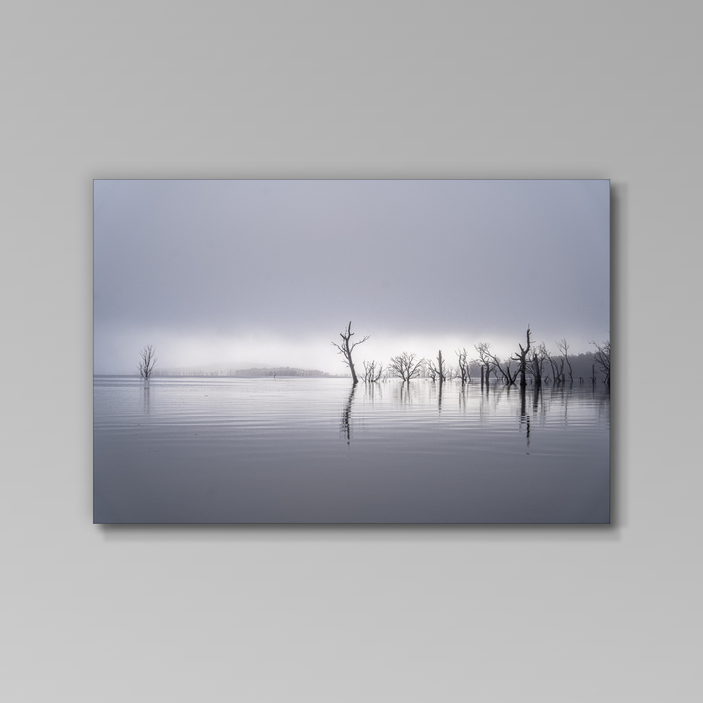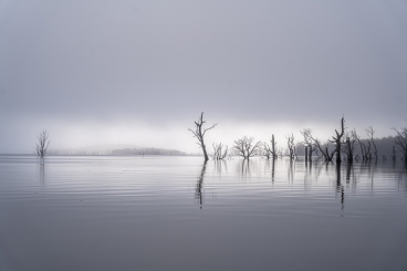 タスマニア島 セントラルハイランド Arthurs湖。おじいさんと犬が暮らす電波の届かない宿で、暖炉にあたりながらのんびり過ごす時間は、穏やかで心に残るひととき。日の出の写真を撮りたいと思っていたけど、霧に包まれた朝はさらに幻想的でした。