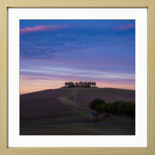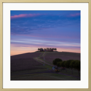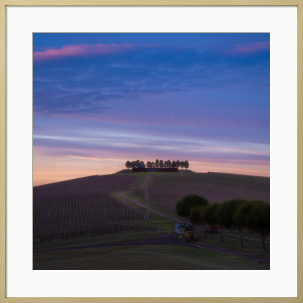 オーストラリア メルボルン近郊のワイン産地、Yarra Valley。静かなぶどう畑の上に、ピンクと紫が溶け合う淡い空が広がり、幻想的な夜明けを描いていました。