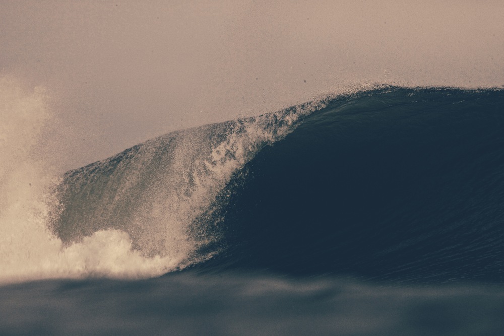 この作品は、海の持つ「光と影」の二面性を象徴的に切り取った一枚です。 波の内側には深淵のような闇が広がり、その外縁では白く砕ける飛沫が生命の躍動を示しています。 静と動、生成と崩壊、そのせめぎ合いが一瞬の造形として現れています。