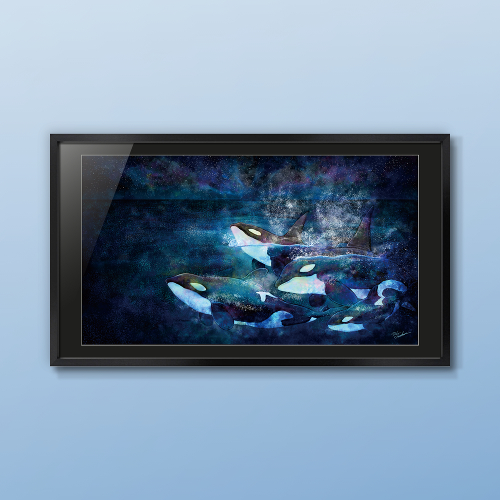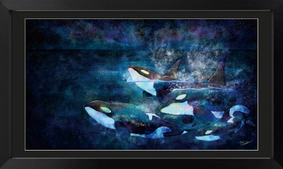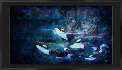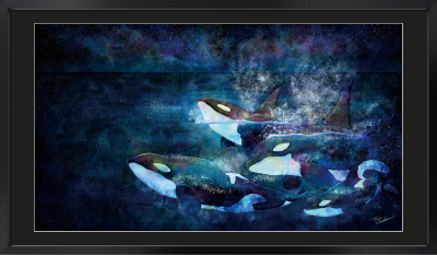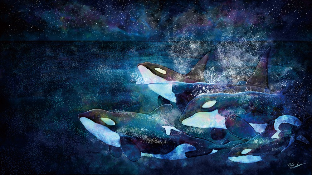 ご覧いただきありがとうございます。 静かな夜の海。 鯱の家族が進む長い旅路をイメージした作品です。