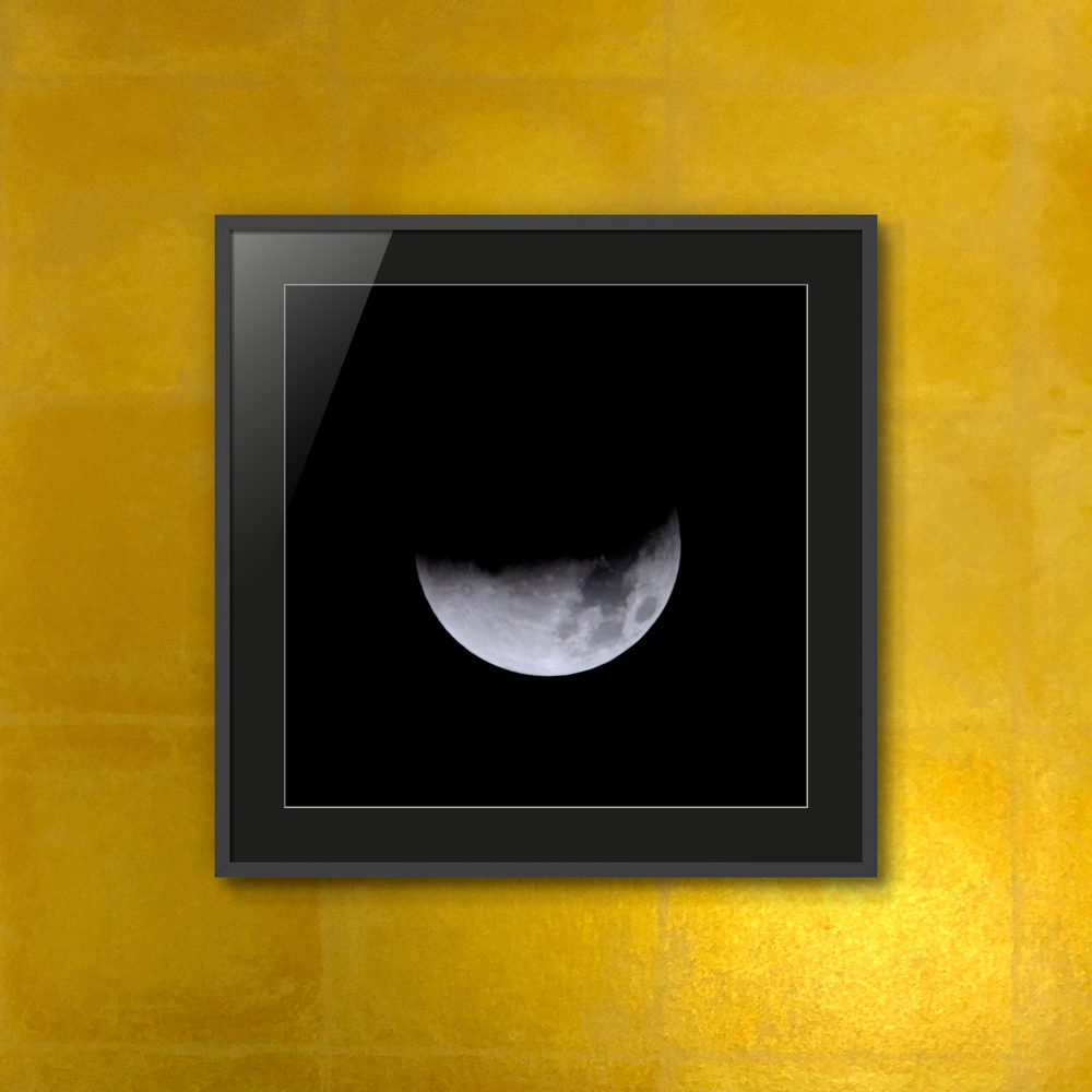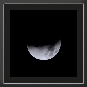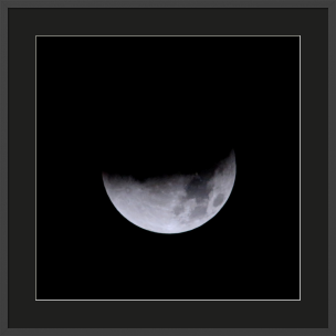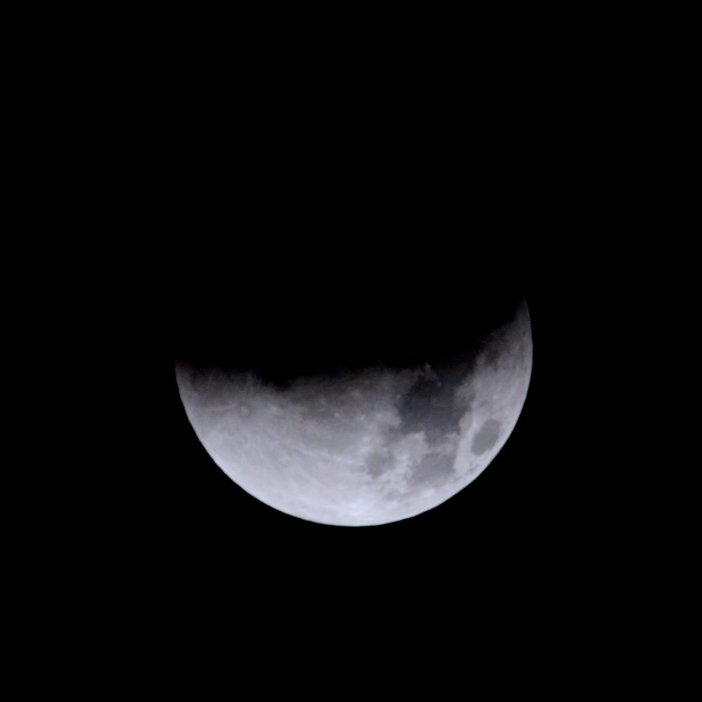 2025年9月8日深夜の月食を撮影しました。満月の少し前ですが、肉眼ではほぼ満月に見えます。左上から徐々に地球の陰に入り始めます。